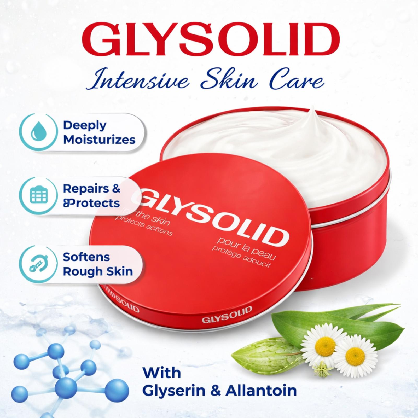 Glysolid Glycerin Skin Cream is a classic intensive care formula designed for dry and rough skin. Enriched with high glycerin content, it helps maintain moisture balance and supports the skin’s natural barrier. Its rich, non-greasy texture makes it suitable for hands, feet, elbows, knees, and other areas that need extra care. Ideal for daily use in all seasons, this cream is widely trusted for long-lasting skin comfort.