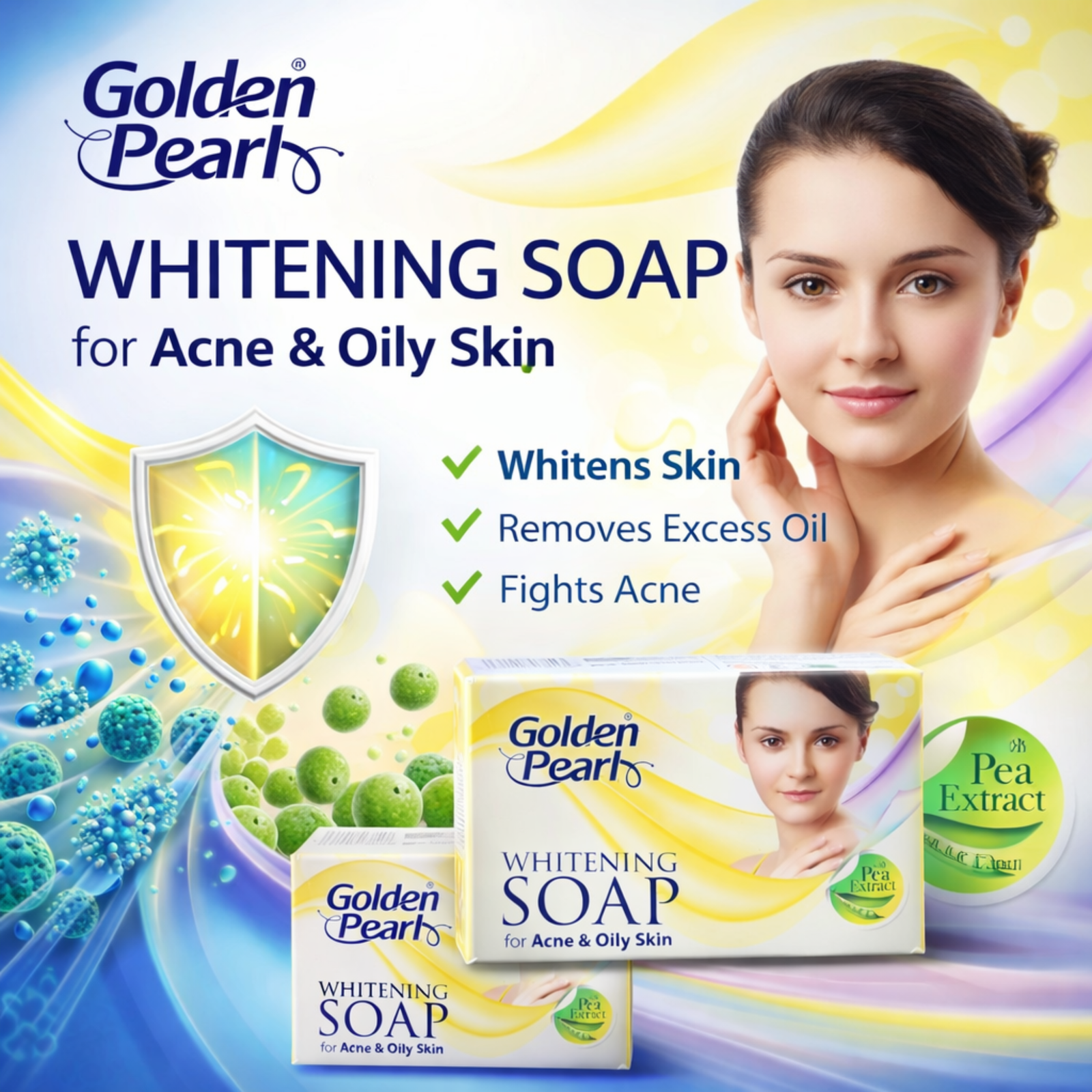 Golden Pearl Whitening Soap is specially formulated for oily and acne-prone skin. Enriched with pea extract, this soap helps cleanse the skin by removing excess oil and everyday impurities while maintaining skin freshness. Its gentle cleansing formula supports daily skincare routines and leaves the skin feeling clean, smooth, and refreshed after every wash.