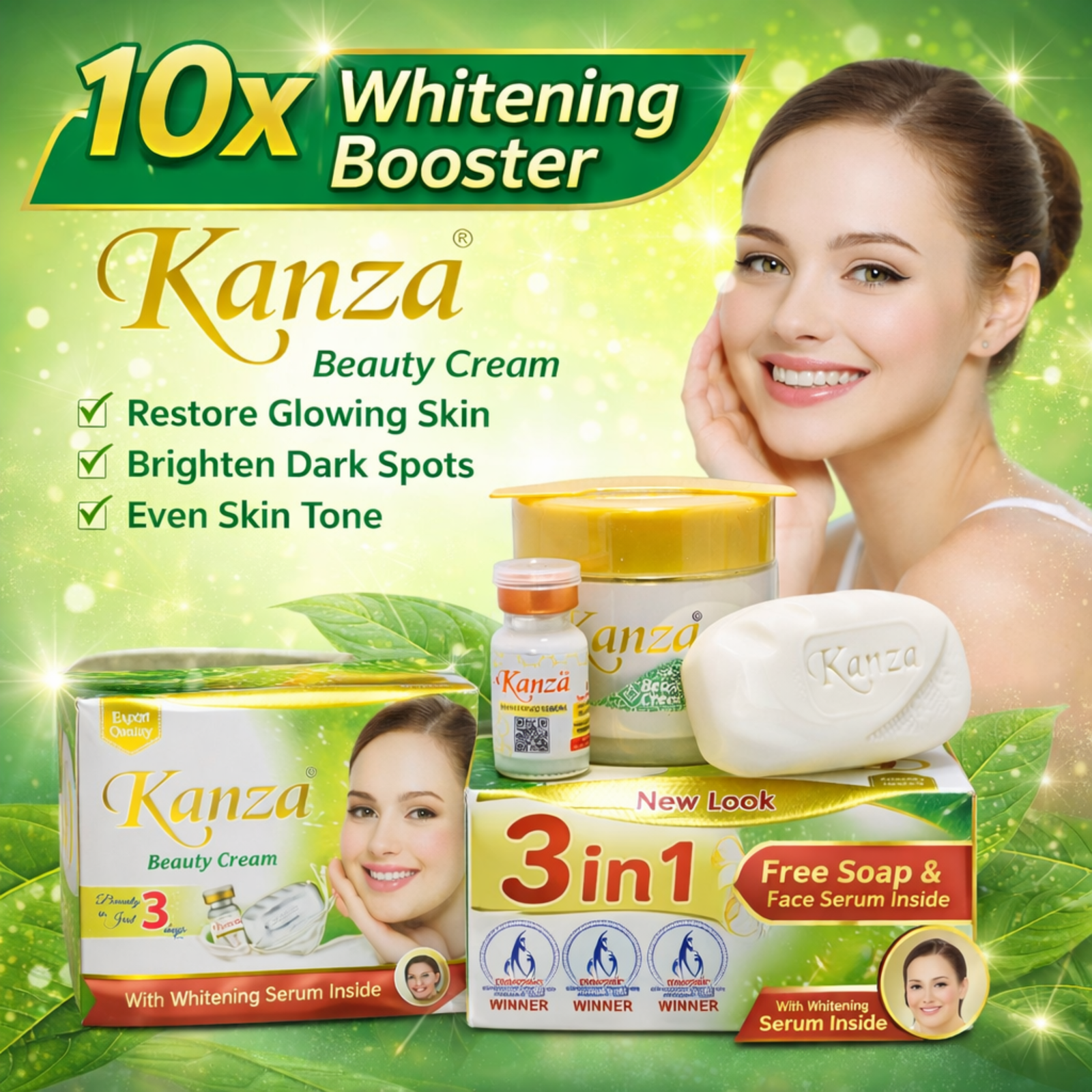 Kanza Beauty Cream 50g with Face Soap & Face Serum | 3 in 1 Skin Care Combo