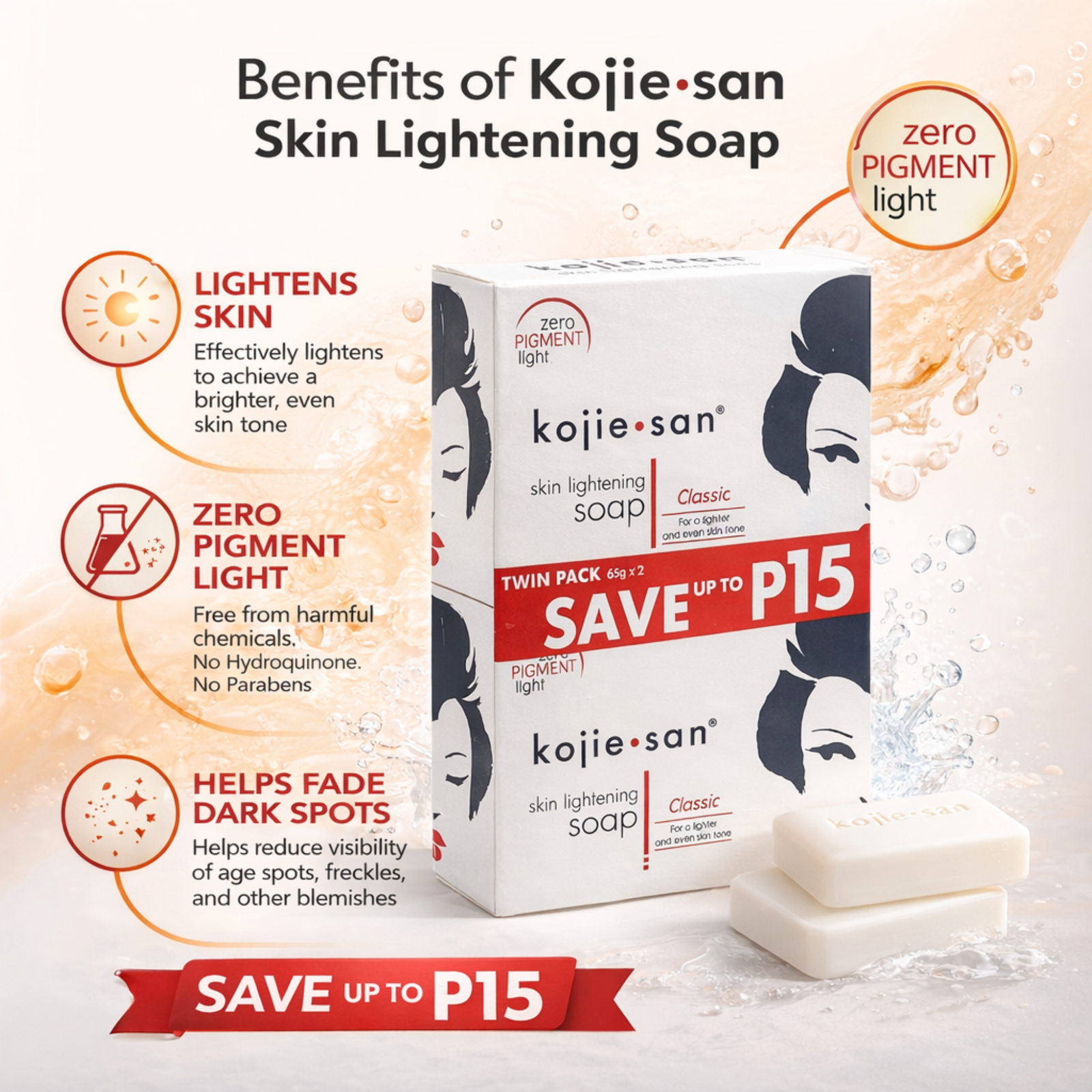 Kojie San Skin Lightening Soap Classic 65g – Pack of 2 | Zero Pigment Light Formula