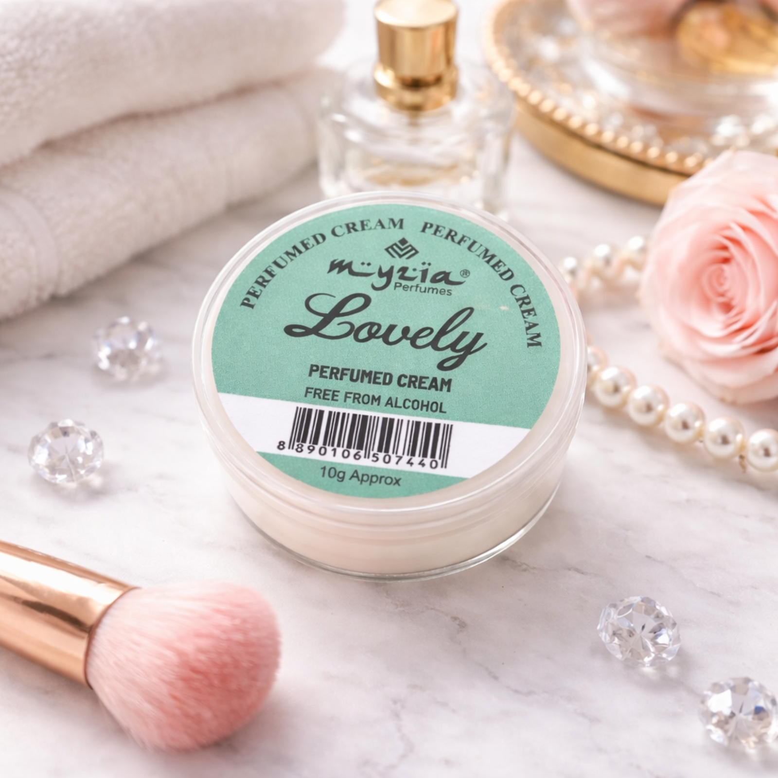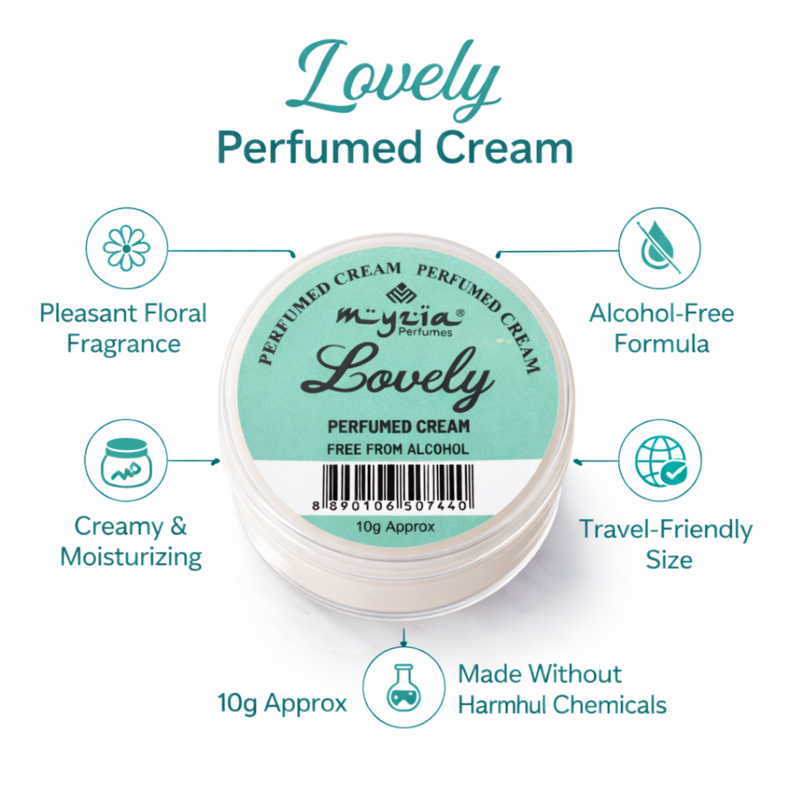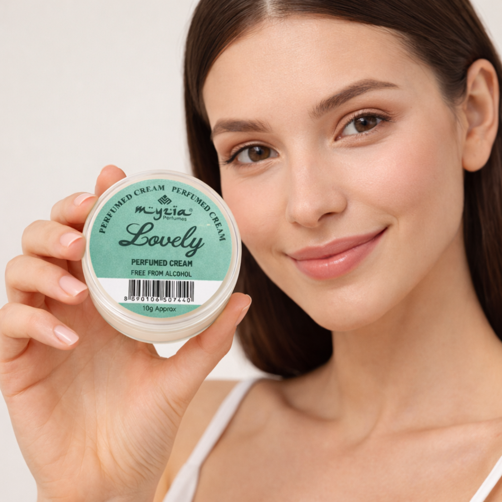 Myzia Lovely Perfume Cream is a compact solid perfume crafted in a smooth wax-based format for direct application on the skin. This alcohol-free cream perfume offers controlled use without spray, making it suitable for everyday fragrance wear.