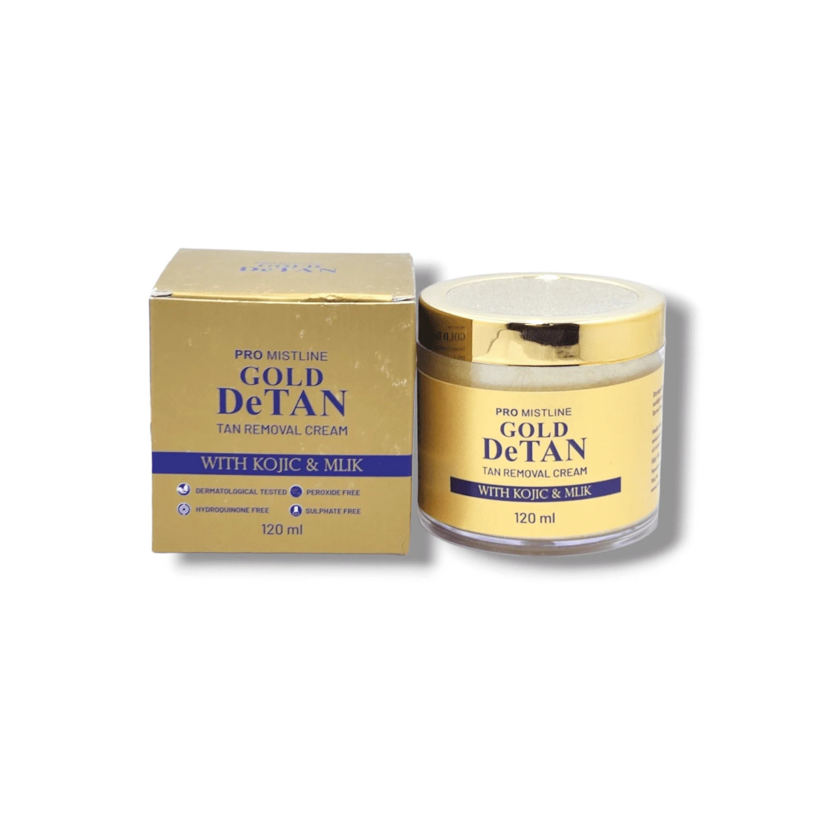 Mistline Gold De Tan Cream with Kojic & Milk is formulated for regular skincare routines where sun exposure leads to visible tanning and uneven tone. The cream features Kojic and Milk-based actives, widely used in cosmetic formulations for surface-level brightening and skin conditioning.