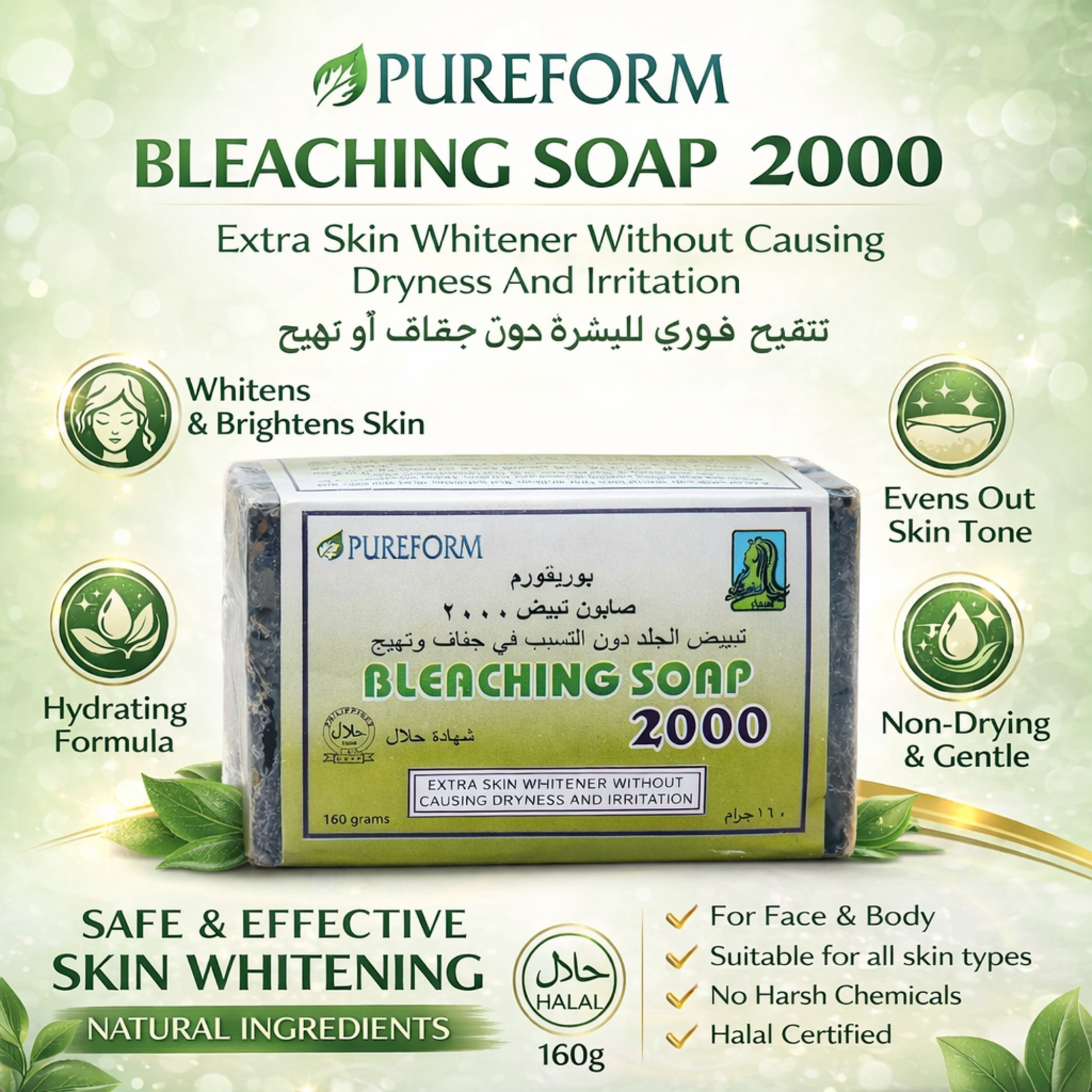 Pureform Bleaching Soap 2000 is a cleansing bar designed for daily skin care routines. Formulated to cleanse the skin effectively, it helps remove surface impurities while supporting a brighter and more even-looking appearance.