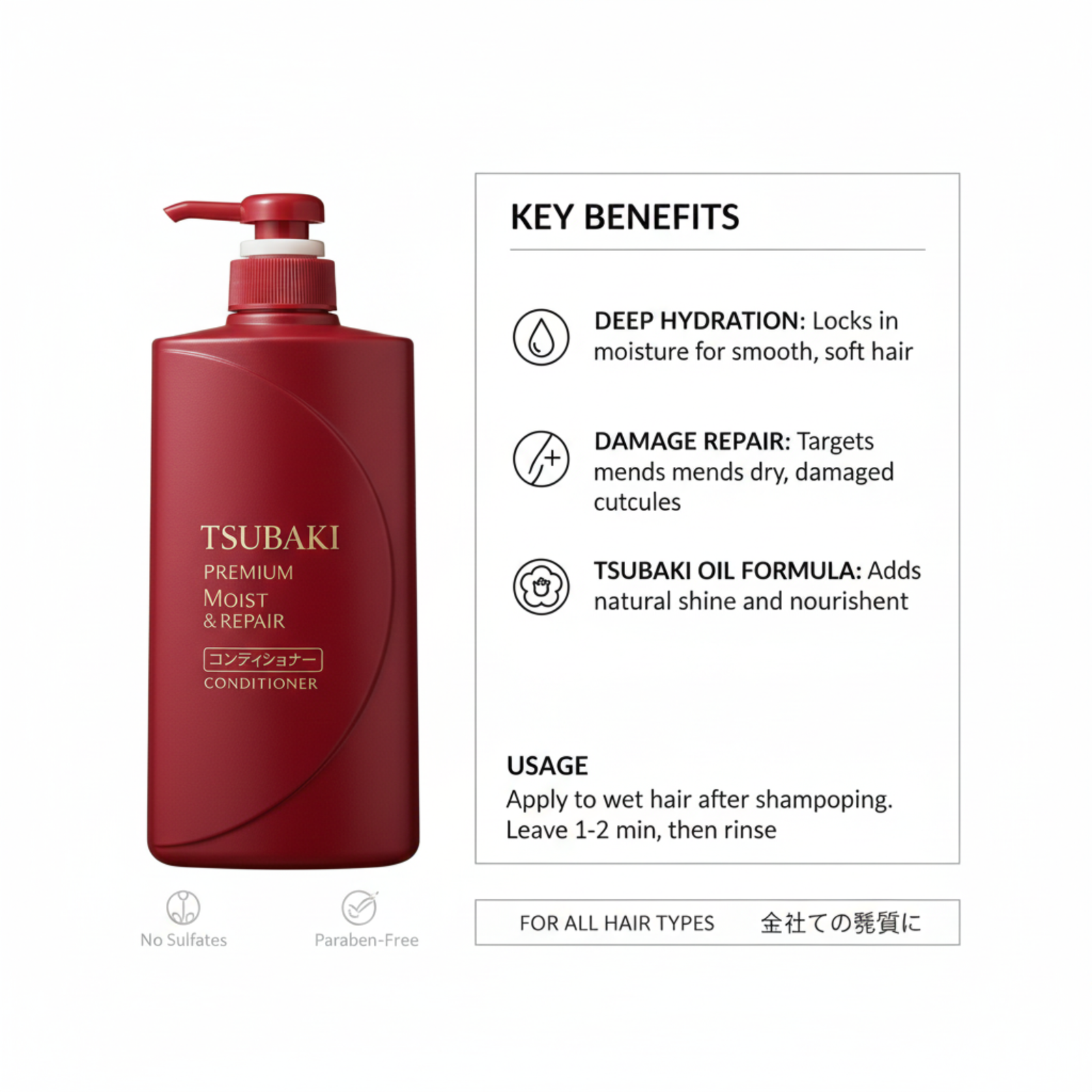 Japanese Hair Care by Shiseido: Part of the renowned TSUBAKI Premium Moist series from Japan.